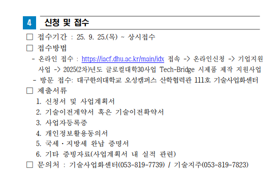 ★대구한의대학교 글로컬대학30 「2025(2차)년도 Tech-Bridge 기업지원사업」 사업계획서 및 제반서류.hwp